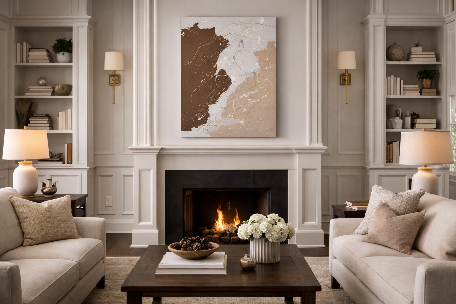 Balanced and self-assured, Calming Ascent brings a refined calm to modern interiors. It evokes cozy luxury — the feeling of warmth, clarity, and quiet momentum. A statement of composed strength, this work is ideal for living rooms, offices, and spaces designed with intention.